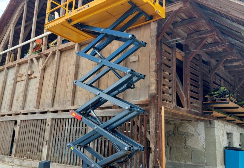 Mit ihrer hohen Durchfahrtshöhe arbeiten die Compact Scherenarbeitsbühnen auch in unwegsamstem Terrain. Mit einer Tragfähigkeit von 450 kg und 3 Bedienern können sie auch die schwierigsten Aufgaben bewältigen. Die Stabilisatoren ermöglichen es Ihnen, auch auf sehr unebenem Gelände zu arbeiten.